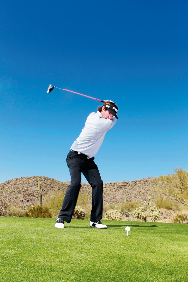 คุณจะเห็นว่าบางครั้งผมจะไดร์ฟแรงมากจนจบวงแบบคลาสสิคไม่อยู่ แต่ไม่ได้หมายความว่าผมจะเสียสมดุลย์ไปนะ แน่นอน สมดุลย์นั้นสําคัญสําหรับสวิงที่ดี และผมขอเถียงถ้าใครมาว่าวงสวิงของผมนั้นขาดความสมดุลย์ คุณไม่จําเป็นจะต้องแข็งเป็นหินตอนจบสวิง ลองดูแกรี่ เพลย์เยอร์เป็นตัวอย่าง เขาเคยแม้แต่ก้าวเท้าไปข้างหน้าตอนจบสวิงด้วยซ้ำ นั่นจําเป็นต้องแปลว่าเขาสูญเสียสมดุลย์ไปหรือ? วงสวิงนั้นมีหลายแบบ ยกตัวอย่าง ไทเกอร์ วูดส์, วีเจ ซิงก์ , ลี เวสต์วูด, เดวิด ดูวาล และนิค ฟัลโด พวกเขาต่างเคยเป็นมือหนึ่งกันมาแล้วทั้งนั้น และต่างมีวงสวิงที่แตกต่างกันอย่างสิ้นเชิง
